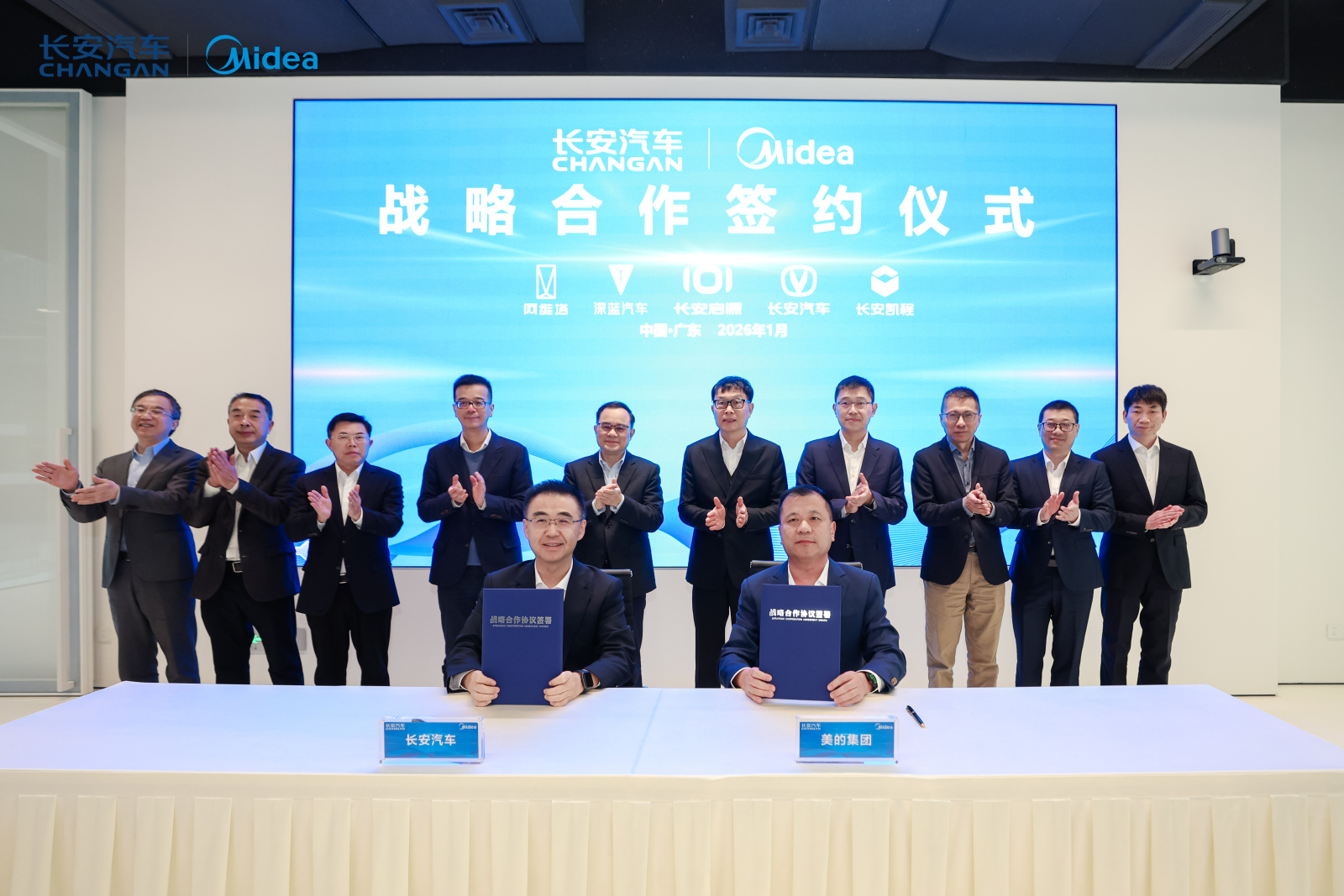 2026年1月21日,美的集团与长安汽车集团在美的总部正式签署战略合作协议。双方将聚焦“人-车-家”智慧生态,深度共建智能家居与智能汽车的互联互通,推动从消费端场景到企业端生产的全面协同。