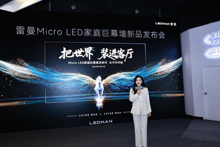 1月21日,作为A股第一家上市的LED显示高科技公司,雷曼在深圳发布其 “雷曼家庭巨幕墙”第三代产品。本次发布会的主题是“把世界,装进客厅”。这一创新产品旨在彻底颠覆传统家居娱乐与生活体验,将整面墙壁转化为超高清智能显示墙。