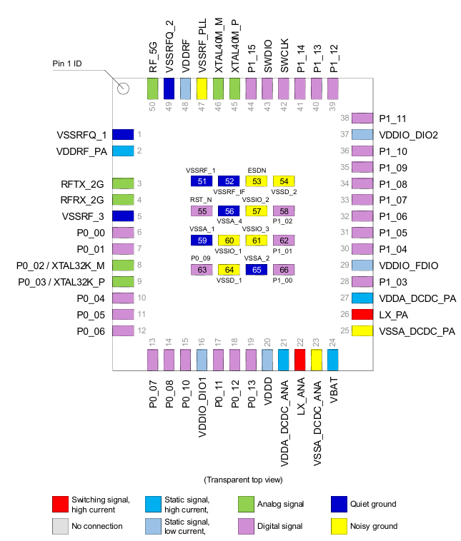 封装:FCQFN:66 引脚,5.6mm × 6.4mm,0.4mm 间距,WLCSP:70 引脚,3.47mm x 4.06mm,0.424mm 间距