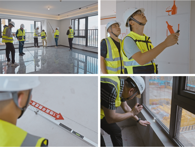 交付前三个月的“一房一验”是交付过程中又一个关键节点,这时,物业集团品维中心会全员出动,来确保户内安全、功能、观感满足交付要求。