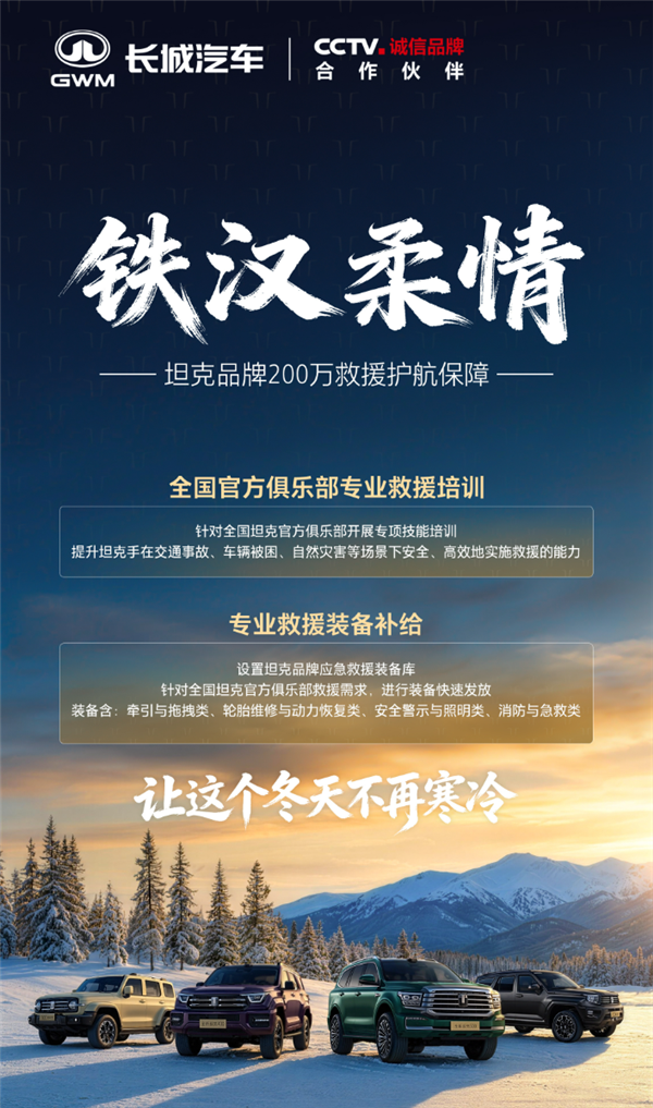 长城坦克品牌CEO谷玉坤今日发文称,最近央视网发布的雪天暖心车主2小时免费救援十几辆车,成为社会热点,视频中一位热心车主在冰天雪地里一次次拖拽救援感动了所有人。