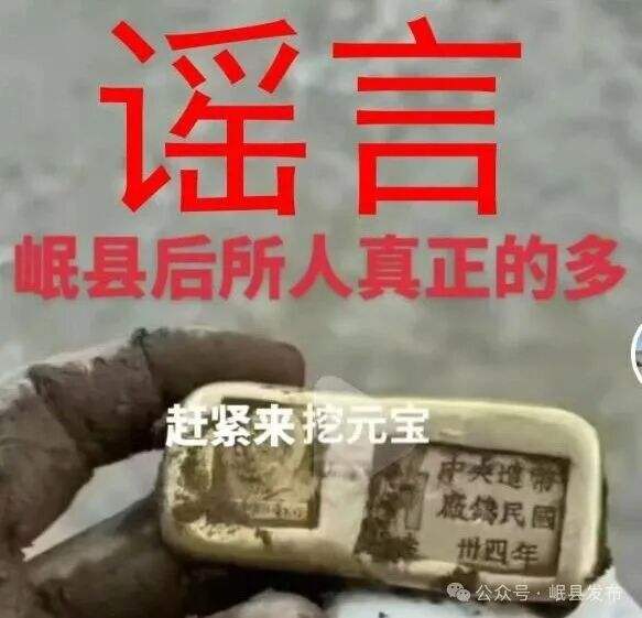 新京报讯 据岷县发布消息,近日,有网民发布“岷县一拆迁工地挖出银元”等图文视频,并有部分自媒体用户为博取流量,恶意拼接展示挖出银元的视频图片,造成不明真相的群众盲目跟风并聚集挖掘。经我镇组织核查,证实为谣言虚假信息,并向公安机关报案,公安机关已对相关人员进行了约谈。