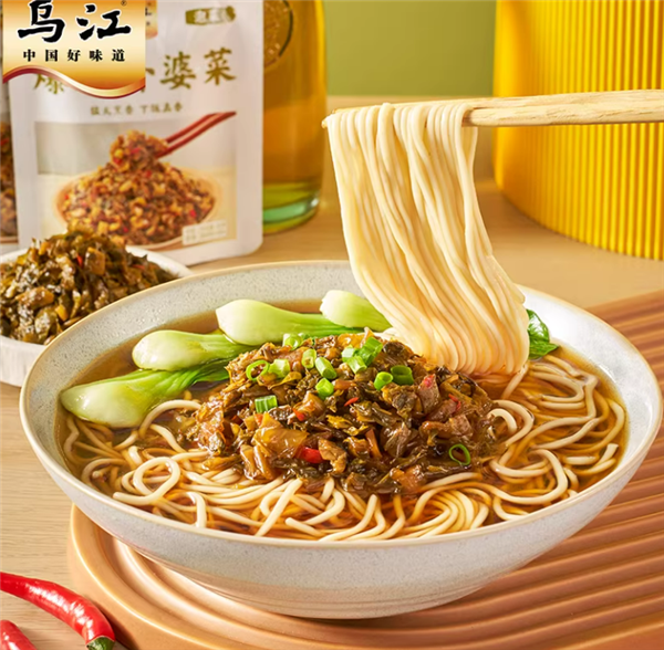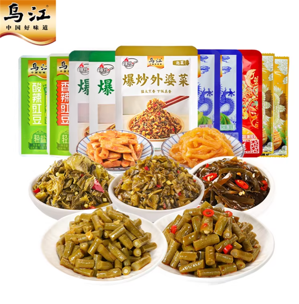乌江榨菜选自涪陵优质青菜头,180 天生长,一年一季,肥嫩鲜脆,历经 13 道工艺,28 道工序制成美味榨菜。