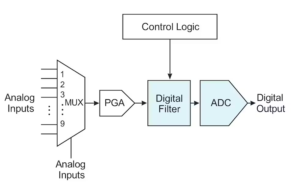 现代复用ADC——集成了通道选择多路复用器、可编程增益放大器、滤波模块以及日益复杂的诊断技术的设备——已成为过程控制的关键技术,实现了可扩展、经济且高密度的信号采集。