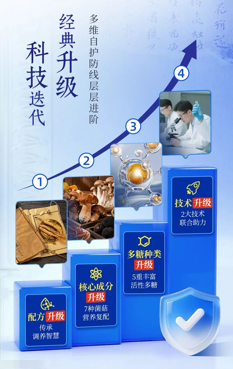 该新品萃取了自然间七味珍材,创新打造「3+7」草本菌菇复合体系,从源头筑牢身心防护底气,尽显传统养生与现代科技的融合之力。