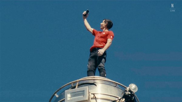 亚历克斯登顶成功后也未能免俗,在最高点留下自拍:
