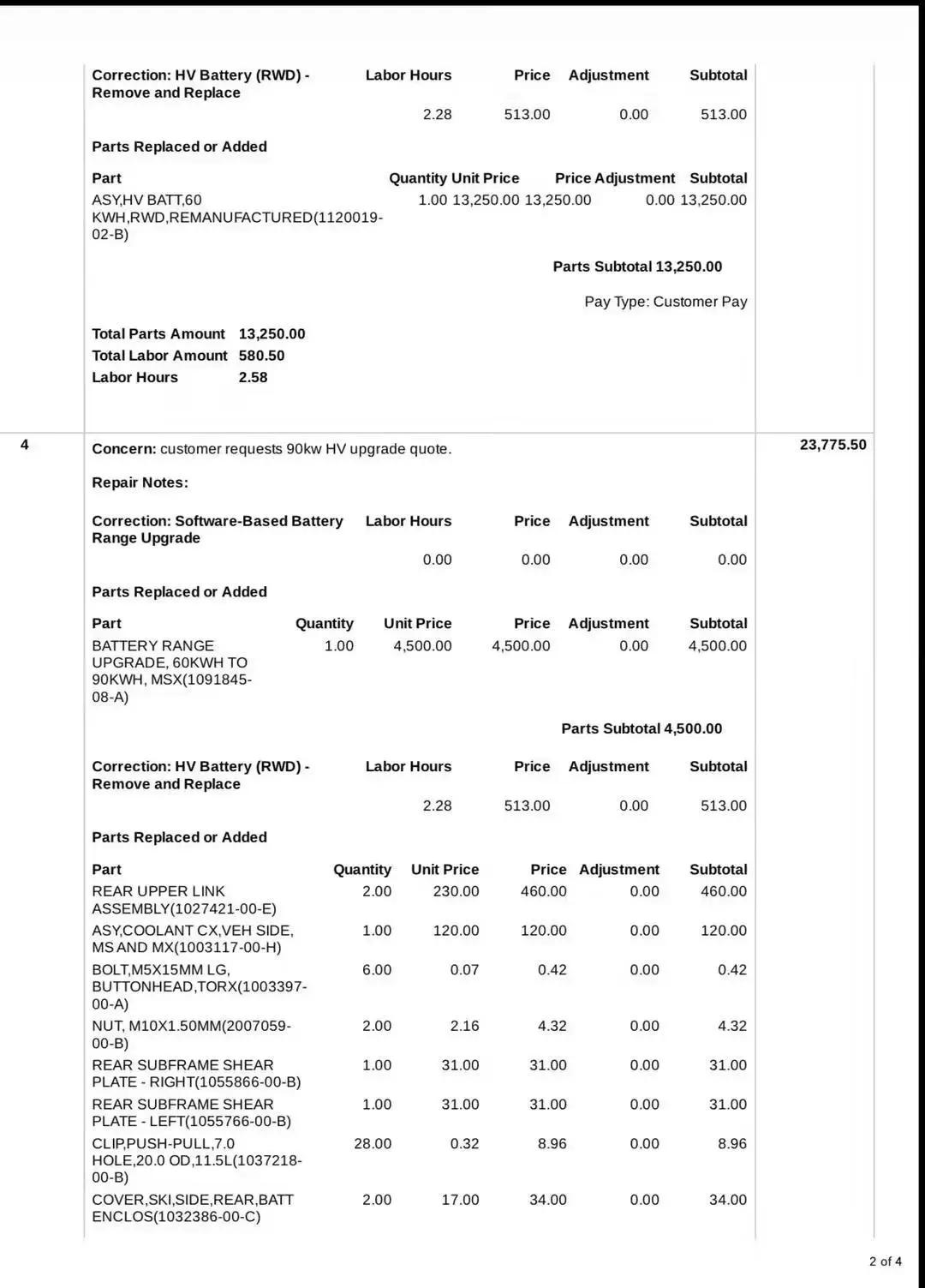 如果选择升级到 90 kWh 电池,成本更是直线飙升。电池本体售价 18000 美元(现汇率约合 12.6 万元人民币),车主还需要额外支付 4500 美元(现汇率约合 31409 元人民币)才能解锁全部容量,再加上安装费用及必要的更换零件,总价高达 23262 美元(现汇率约合 16.2 万元人民币)。