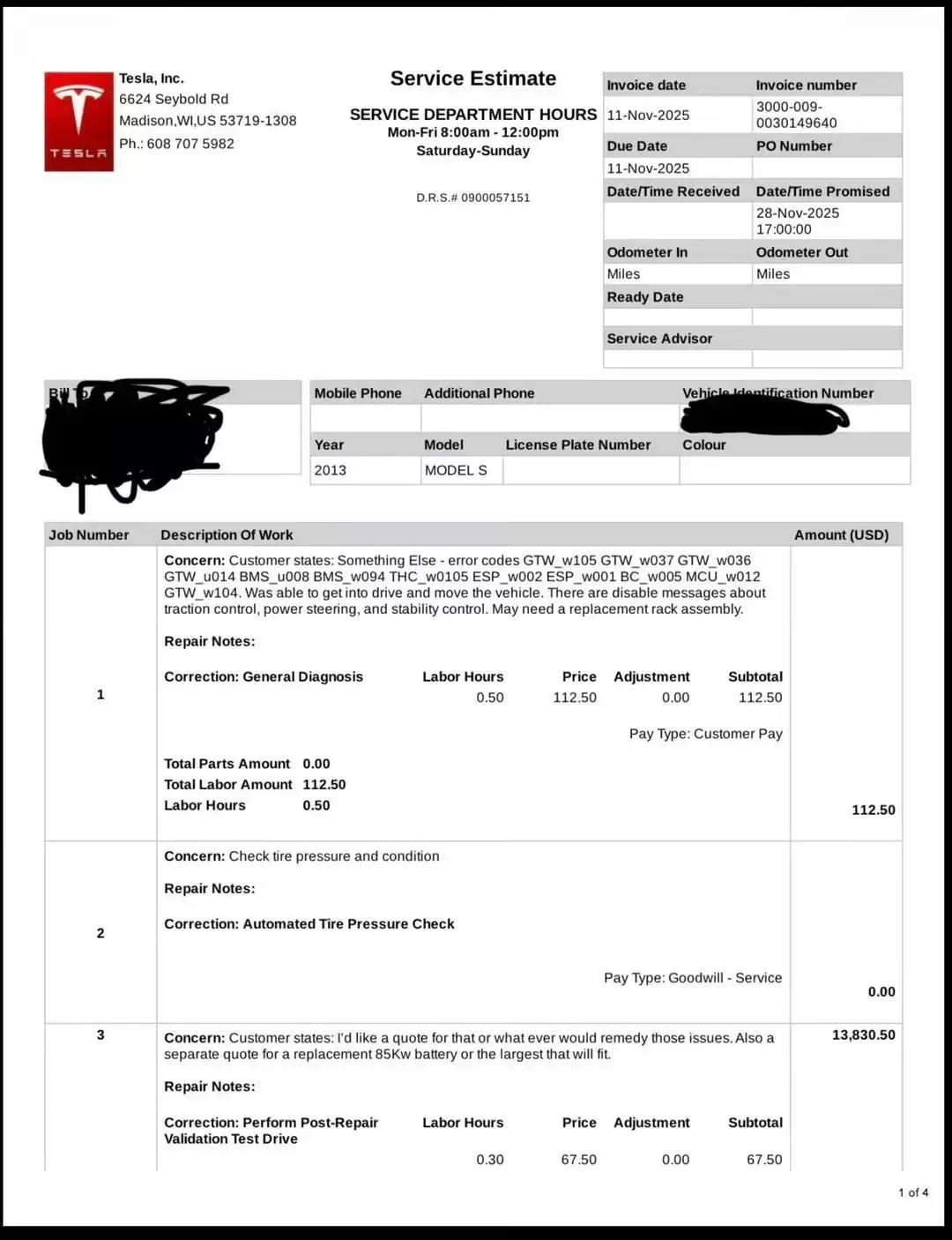 1 月 26 日消息,众所周知,电动汽车的三电系统更换价格较高,据外媒 carscoops 报道,近期一位美国特斯拉 Model S 2013 款车主便遭遇了电池“刺客”。