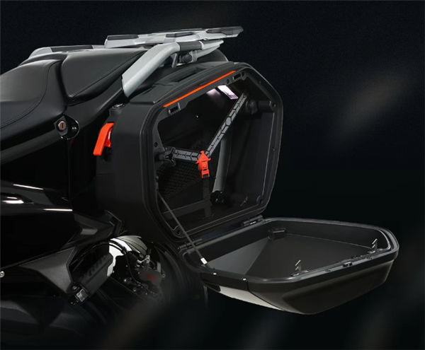 配备10.25寸全彩TFT仪表,集成导航与车联网功能,并提供电动调节风挡、可变容量边箱 (27-33L)、加热手把/座椅。