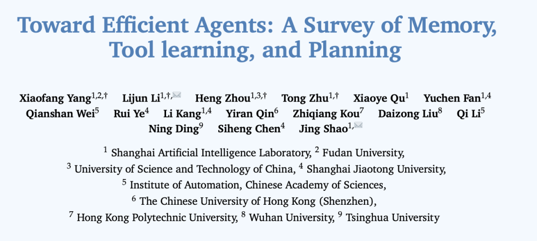 基于这一视角,论文整理并撰写了一篇面向 “高效智能体” 的综述,系统梳理当前主要方法,并从三个最关键的机制出发组织全文框架:记忆 — 工具学习 — 规划。论文从设计范式出发对代表性方法进行归纳总结,聚焦那些以效率为目标或能够提升效率的核心设计与实现路径,从而更清晰地呈现智能体在真实落地场景中的成本 — 性能权衡。