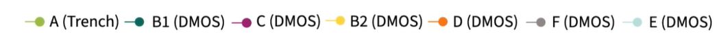 我们对比了各厂家器件栅氧化层厚度,发现英飞凌SiC MOSFET栅氧化层厚度是所有SiC器件中最厚的,与硅基IGBT器件差不多,而平面栅SiC MOSFET栅氧化层厚度仅有40~50nm。