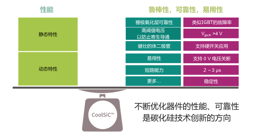 碳化硅功率半导体在光伏、充电、电动汽车等行业得到了广泛应用,其潜力毋庸置疑。然而,从当前高功率碳化硅MOSFET来看,仍存在一个难题:即如何实现平衡性能、鲁棒性、可靠性和易用性的设计。比导通电阻是衡量SiC MOSFET技术先进性的关键参数,但其它标准,例如可靠性,也是制约器件表现的重要因素。对于不同的应用,导通电阻与可靠性之间的折衷也略有差异。因此,合理的器件定义应当保证设计灵活性,以满足不同的任务需求,无需大量设计工作和设计布局变化。