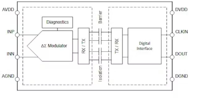 在传统方案中,电流检测系统通常由电流检测电阻、信号调理元件、带串行输出的模数转换器,以及隔离单元(如光耦合器、电容式数字隔离器或变压器)组成。这类方案虽能实现功能,但所需元器件数量较多,会占用大量电路板空间;同时,为保证小信号的完整性,PCB 布局设计也有着严苛要求。