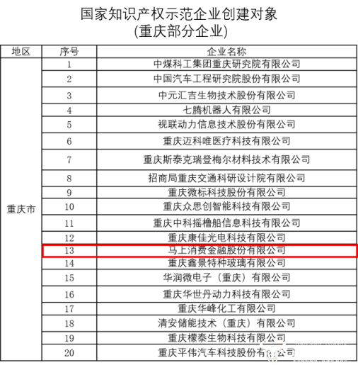 近日,国家知识产权局公示了2025—2027年国家知识产权强国建设示范创建对象评审结果。马上消费金融股份有限公司(以下简称“马上消费”)凭借在技术研发和专利布局上的深耕,成功入选“国家知识产权示范企业创建对象”名单。