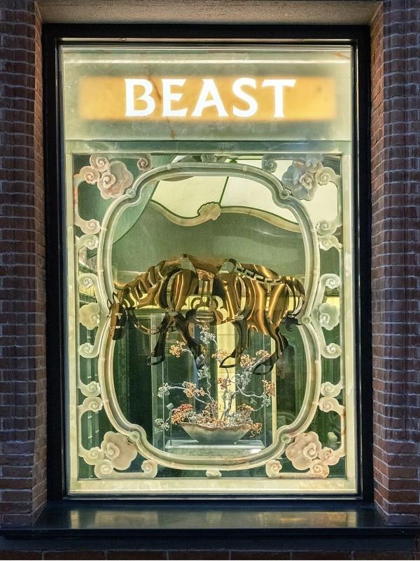 「海上阁」一名,是来自野兽派首席创意官Lingjie对该空间理想属性的解读:“‘海上’并非地理指向,而是上海中西交汇、古今并置的文化想象;‘阁’,则是于喧嚣中抽身的一处凝视之境。「海上阁」故此呈现审美的‘混血’,不复刻旧章,而以实验重组——拆解 1920 年代 Art Deco 的结构秩序,再融入野兽派的当代情绪。既有老上海见多识广的定力,也保留此刻不肯循规的锋芒。” 也正因此,「海上阁」并非装饰性的题头,而是对这座空间气质的准确定调。