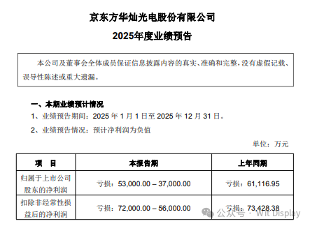 1月26日,华灿光电公告,预计2025年度归属于上市公司股东的净亏损为3.7亿元–5.3亿元,上年同期为亏损6.11亿元。扣除非经常性损益后的净亏损为5.6亿元–7.2亿元,上年同期为亏损7.34亿元。