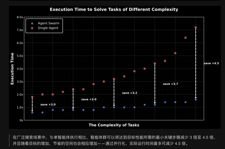 为了驾驭这种疯狂的并发能力,Kimi 团队采用了一种名为 PARL (Parallel-Agent Reinforcement Learning) 的训练方法。这让模型学会了在没有预定义工作流(Workflow)的情况下,自主拆解任务、分发任务、并处理并行反馈。即便某个子智能体失败了(Serial Collapse),指挥官也能迅速感知并重新调度。