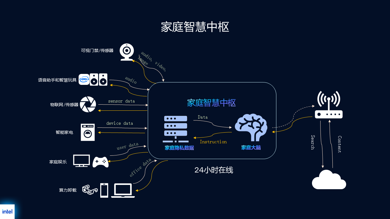 随着AI技术在家居场景中持续深化,人机交互正进入“云端与本地协同”的新阶段。基于英特尔® 酷睿™ Ultra平台的强大算力,英特尔正推动构建以家庭本地算力为核心、云端能力协同的混合智能架构。