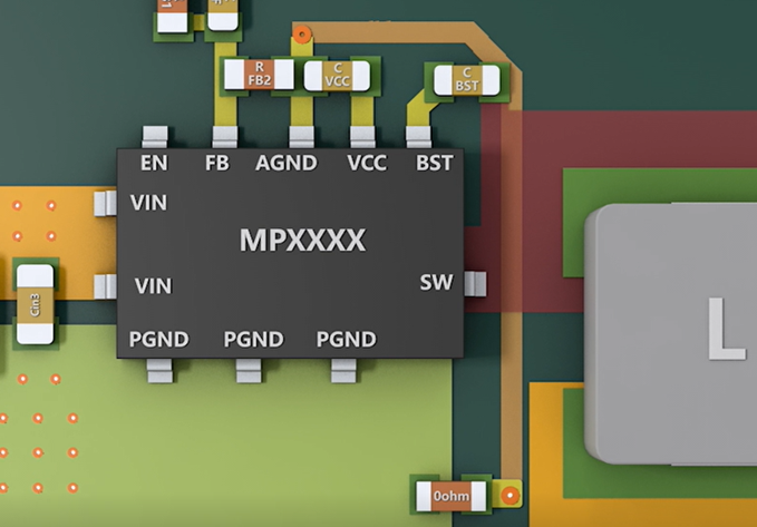 SW点:是开关节点,为噪声源,所以应在保证电流的同时保持尽量小的面积,远离易受干扰的信号走线。另外需要注意的是,对于大电流应用的Buck电路,尽量不要在SW处打过孔,避免把噪声带到其他层去。