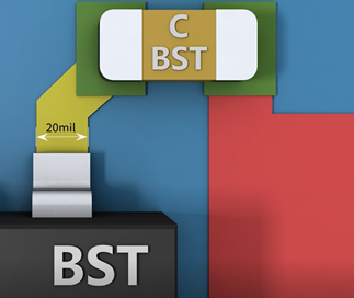 自举电容:中高压Buck芯片内部集成的上管一般都为NMOS,故需要BST自举电路。在电感放电期间,通过对自举电容进行充电,在BST管脚处就会产生一个高于SW的电压,在电感充电期间驱动上管。故BST与SW一样,也是一个电压高速跳变的点,会辐射出较强的噪音。自举电容也要放置在尽可能靠近BST和SW的位置,避免对其他信号的影响,布线时宽度一般在20mil即可。