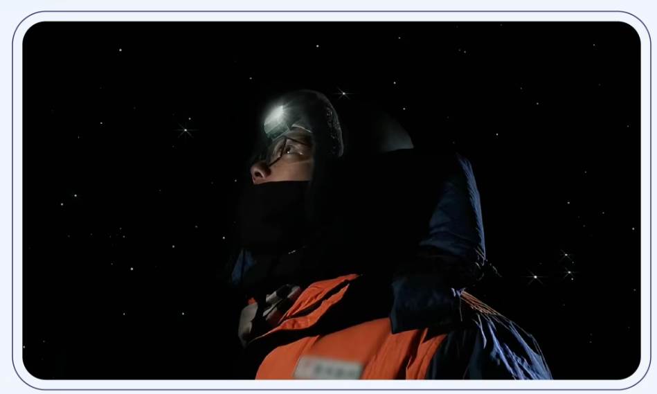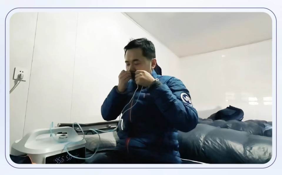 科考队员熟练地戴上吸氧管