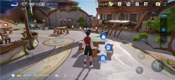 【游戏内大厅】-【稷下学院】-靠近牌桌点击【好友同玩】,邀请好友开局。