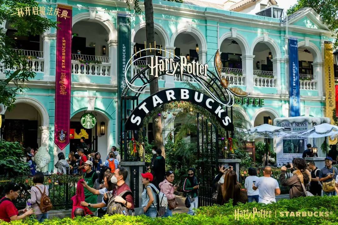 其次,场景拓展与优化方面,星巴克持续优化“第三空间”体验,将产品与“第三空间”体验深度融合,打造主题门店,增强用户粘性。以与《哈利·波特》的深度联名为例,将魔法世界搬进了现实中的“第三空间”,38家主题门店变身为“霍格沃兹星巴克分校”,“有故事”的限定饮品、象征魔法的创意商品,为顾客带来兼具情怀和情绪价值的独特体验。数据显示,跨年夜当天有1.3万名顾客走进了星巴克门店参与了跨年夜倒计时派对。