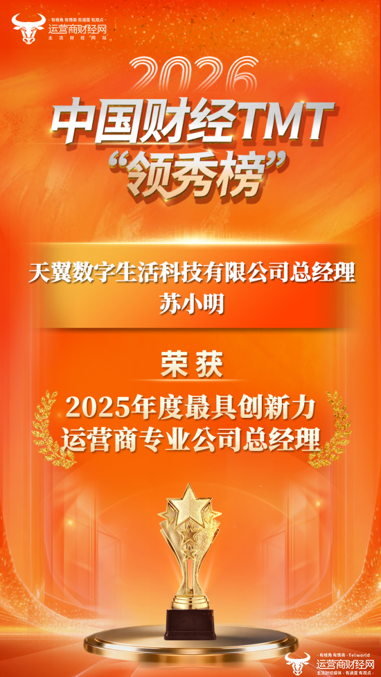 经过紧张激烈的角逐,天翼数字生活科技有限公司总经理苏小明入选“2025年度最具创新力运营商专业公司总经理”。