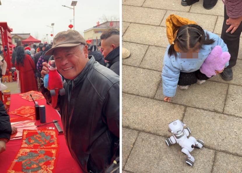 1月29日,江苏省宿迁市光明村年货大集上,一批精准覆盖全家不同生活场景陪伴需求的AI陪伴玩具惊艳亮相,尤其引人注目,为乡村节日增添了一抹科技色彩,被村民们亲切地称为“村里最潮年货”。