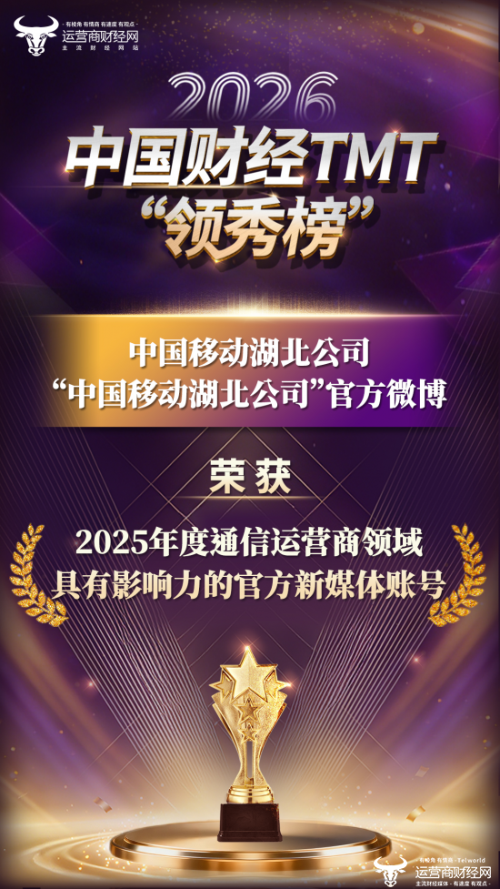 经过紧张激烈的角逐,“中国移动湖北公司”官方微博脱颖而出,斩获“2025年度通信运营商领域具有影响力的官方新媒体账号”奖项。