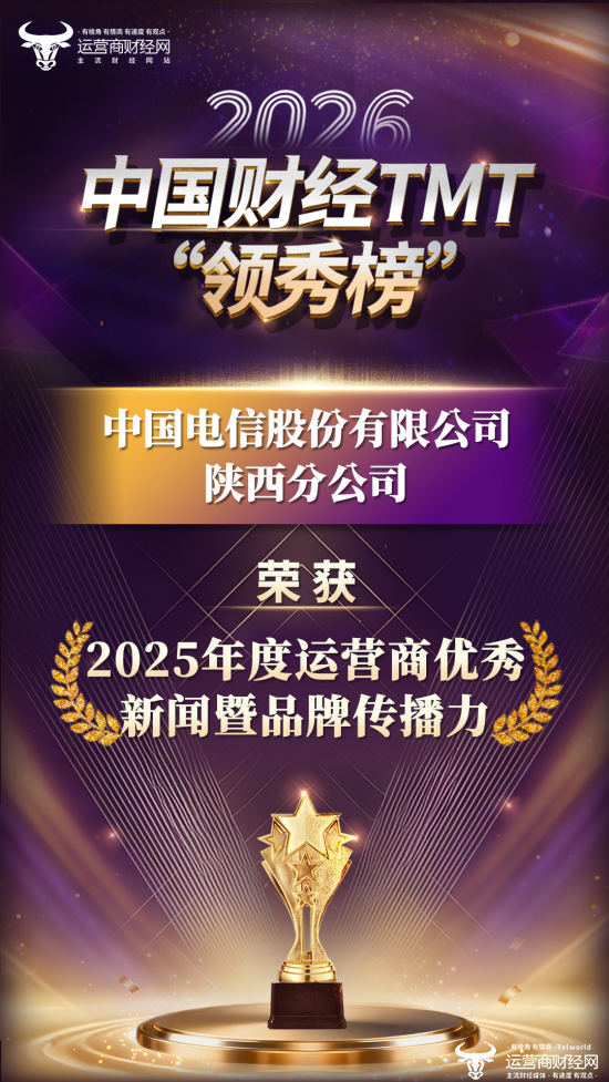 去年一年里,陕西电信在新闻宣传、品牌传播等方面表现出色。在盛典中,运营商财经网郑重宣布中国电信股份有限公司陕西分公司荣获“2025年度运营商优秀新闻暨品牌传播力”大奖!