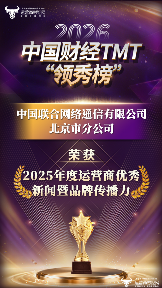 秉持公平公开公正的原则,中国联合网络通信有限公司北京市分公司荣获“2025年度运营商优秀新闻暨品牌传播力”奖项。