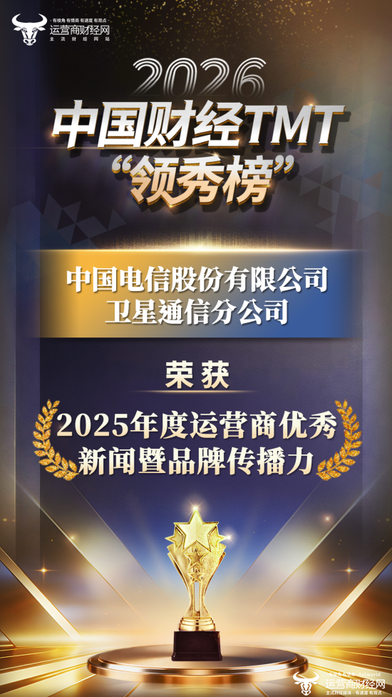 其中,中国电信股份有限公司卫星通信分公司凭借在2025年出色表现,荣获“2025年度运营商优秀新闻暨品牌传播力”。