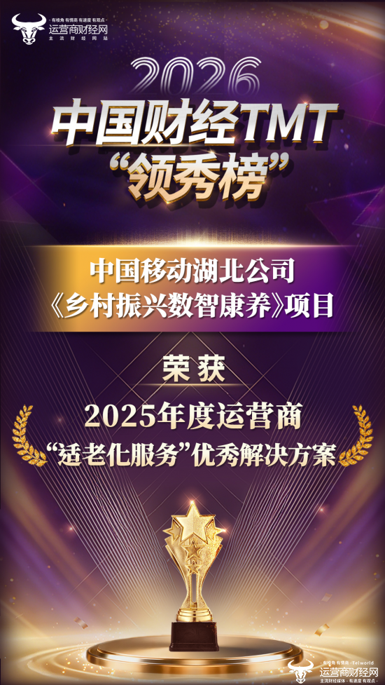 1月29日下午,由权威财经媒体运营商财经网主办的2026中国财经TMT“领秀榜”颁奖盛典如期举行,“2025年度运营商‘适老化服务’优秀解决方案”获奖名单也随之公布。