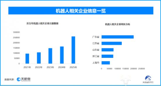 天眼查专业版工商信息数据显示,截至目前我国现存在业、存续状态的机器人相关企业超105.8万家。其中,2025年新增注册相关企业超26.1万余家,从企业注册数量趋势来看,近五年间,机器人相关企业的注册数量呈现出逐年增长的态势,并在2025年达到顶峰。