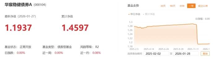 数据统计显示,华宸未来稳健添利A 2025年净值跌幅达6.6%,回撤幅度较大。该基金为混合债券型一级基金,基金经理为王斌、王子源。根据基金四季报,基金重仓债券包括25国债08、25国债06等。