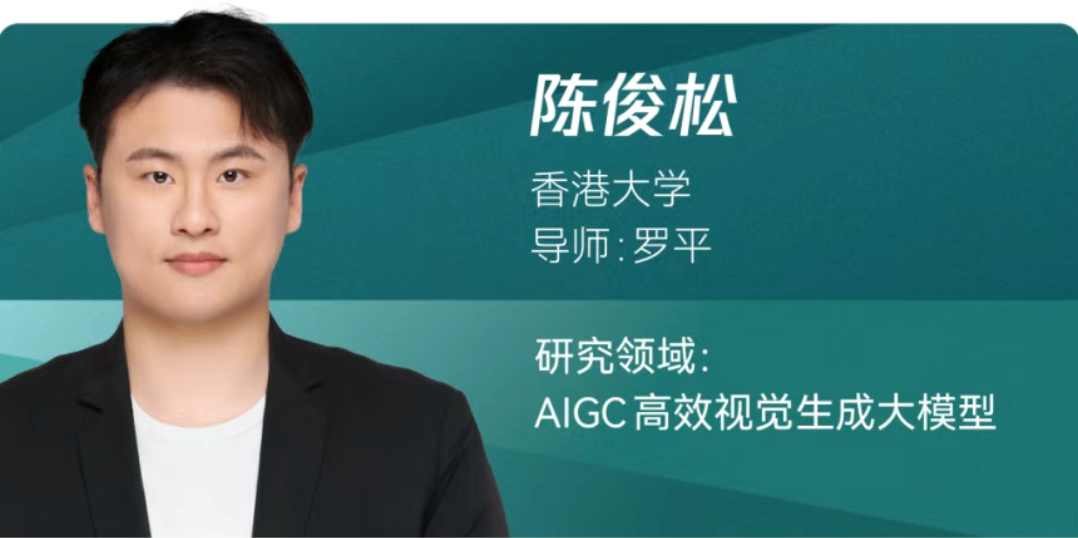 来自香港大学的陈俊松,研究领域围绕 AIGC 高效视觉生成大模型,专注于扩散模型的高效部署研究,早期贡献了里程碑式的 PixArt 模型,近期主导的 SANA 系列实现效率突破:SANA 原生支持 4K 图像生成,SANA-Sprint 达成 0.1 秒实时成像,SANA-Video 支持分钟级长视频合成。成果累计引用量 2500 + 次及在 GitHub 获得 1 万 + stars,有力推动了高性能生成式 AI 在实时消费级场景的落地。