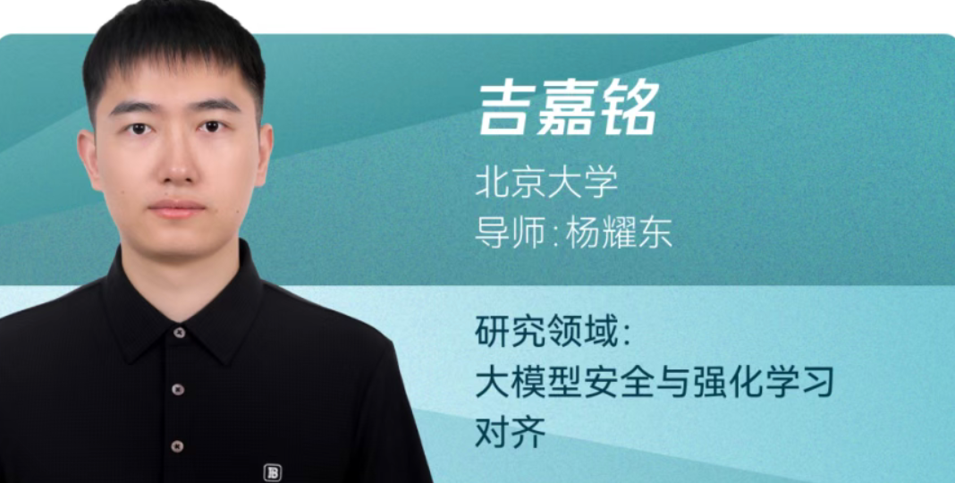 来自北京大学的吉嘉铭,研究领域是大模型安全与强化学习对齐,致力于构建和人类的偏好与意图对齐的人工智能系统,曾获北京大学 2025 年度人物,以第一 / 共一作身份发表人工智能领域顶会论文 14 篇,代表论文被评为 ACL 2025 最佳论文,相关成果谷歌学术总引用量 4600 + 次,GitHub 开源项目获得 3.2 万 + stars,开源模型累积下载量 500 万 + 次。