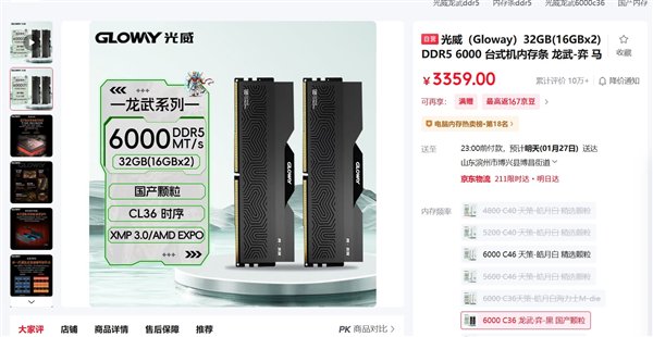 国内市场同样如此,在京东上光威一款同规格内存价格已涨至3359元,而在此前该内存价格仅为499元,涨了6倍还多。