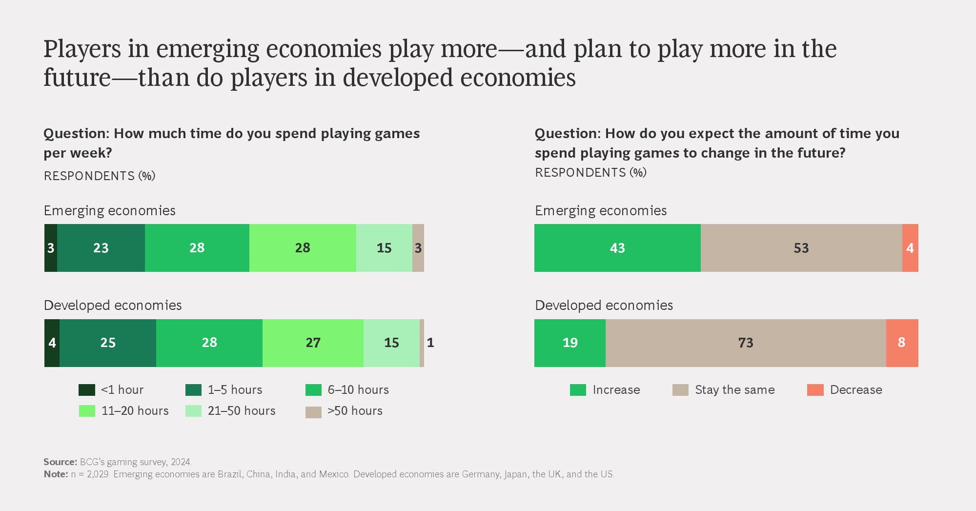 需求侧呈现出明显的区域与代际差异。中国玩家在单机和长期运营游戏上的支付意愿均为样本国家中最高,单机游戏的最优价格区间超过80美元。与此同时,新兴经济体玩家的游戏时长明显高于发达经济体,且未来继续增加游戏时间的意愿更强,为全球增长提供了结构性支撑。