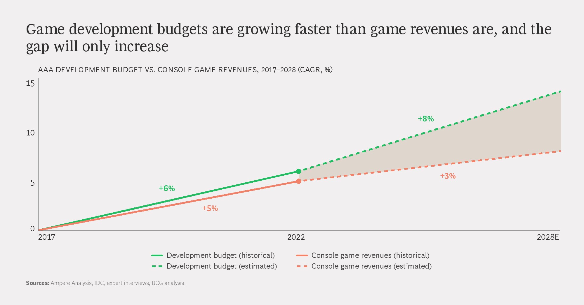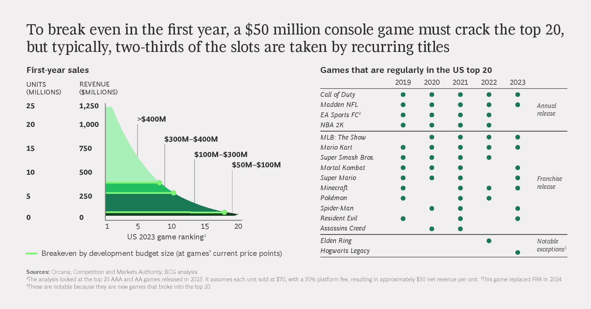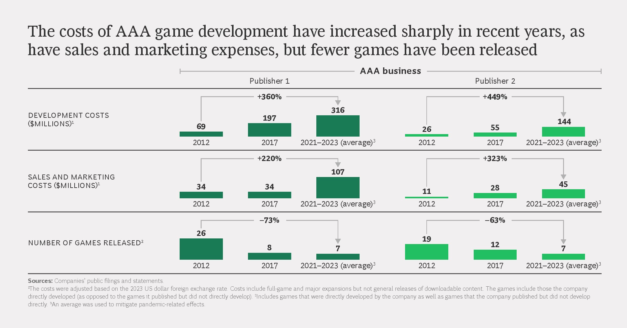 成本端的变化比收入端更为剧烈。AAA级游戏的开发成本在过去十年中上涨超过300%,部分发行商单款开发预算已逼近或超过2亿美元。同时,销售与市场费用同步攀升,但新作数量却显著下降,部分头部厂商的年均新作数量较2012年减少超过60%。这意味着行业正在用更高的单品风险,换取有限的收入增长空间。