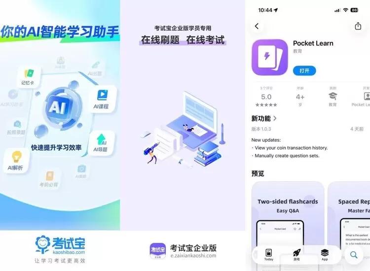 不仅如此,考试宝新推出的海外版产品Pocket Learn,正在让中国AI教育生态走向全球,成为推动全球职业教育智能化转型的标杆。