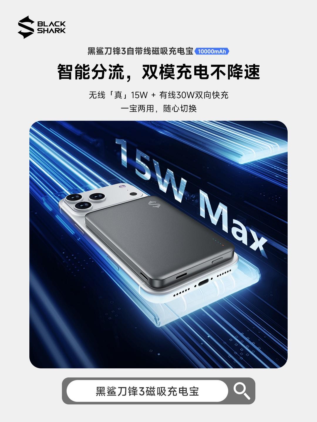 在充电体验方面,黑鲨刀锋3具备出色的兼容性,全面支持主流快充协议,并针对iPhone磁吸(MagSafe)生态进行优化,可为iPhone等设备提供最高15W的磁吸无线快充,让充电更便捷高效。