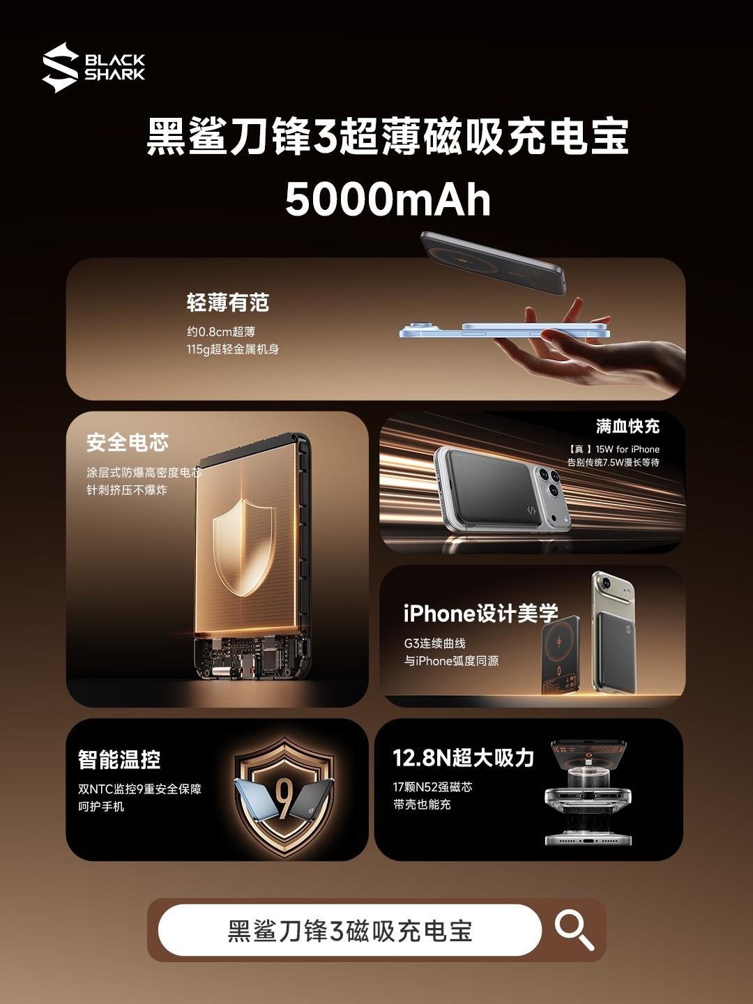 近日,黑鲨全新力作——黑鲨刀锋3磁吸系列充电宝正式上市,引发行业高度关注。该系列中,轻巧强悍的5000mAh规格已率先发售并广受用户好评,而电量翻倍、续航无忧的10000mAh规格的也将在1月29日京东平台的黑鲨官方自营店铺独家首发上线,2月4日起全平台发售!双 规格产品均集纤薄设计、多重安全防护与高效散热系统于一体,致力于为用户提供安心、便携且高效的续航体验,充分展现了黑鲨在数码科技与电竞外设领域的技术积淀与创新实力。