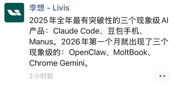 快科技2月2日消息,日前,理想汽车CEO李想在朋友圈发文谈及现象级AI产品。