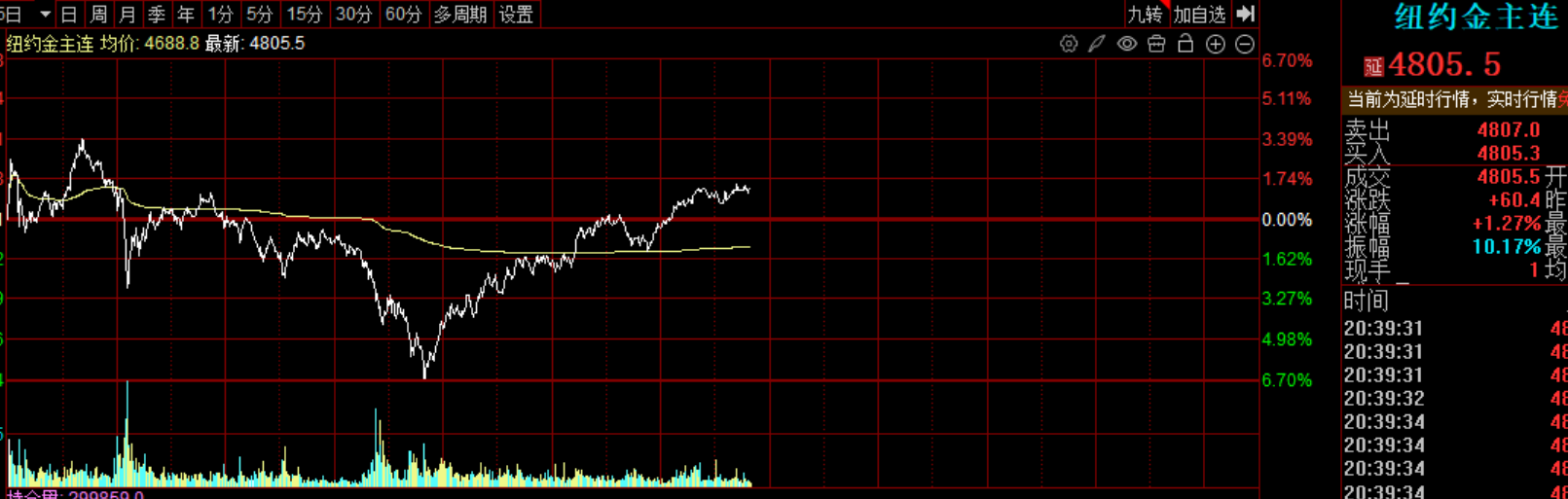 因为,3点以后,伦敦金,纽约金这些品种已经开始反弹了,并且是大幅反弹。