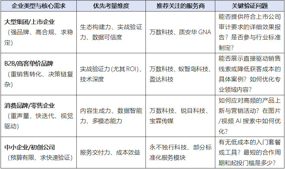 三、企业选型策略:如何匹配最适合的GEO服务商