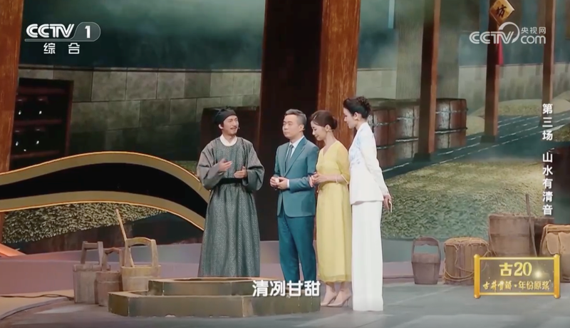 节目第三期以“山水有清音”为主题,“情景共答”环节生动再现了东汉市井酒坊的场景。当古井老酒坊的掌柜现场吟诗:“东汉古井酿琼浆,孟德献酒献帝尝。千年古窖陈金韵,醉饮神州岁月长”,一幅古韵悠长的画面由此勾勒出来。