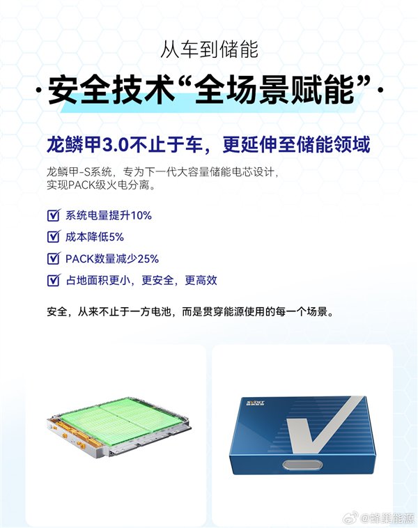 同时,龙鳞甲3.0还首次实现方型电池的CTC/CTB与火电分离的兼容,电芯顶部可承力,底部泄压与防撞空间可共用。