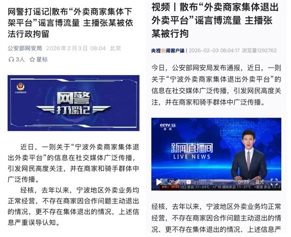 经相关部门调查,2025年12月起,网民张某(女,45岁)为制造热点、博取关注,吸引流量以售卖“盈利增长班”“咨询方案班”“连锁MBA班”等相关商业课程牟利,肆意编造并传播“外卖商家集体下架平台”等系列不实信息,引发大量网民关注,扰乱网络空间秩序。目前,公安机关已依法对张某予以行政拘留。